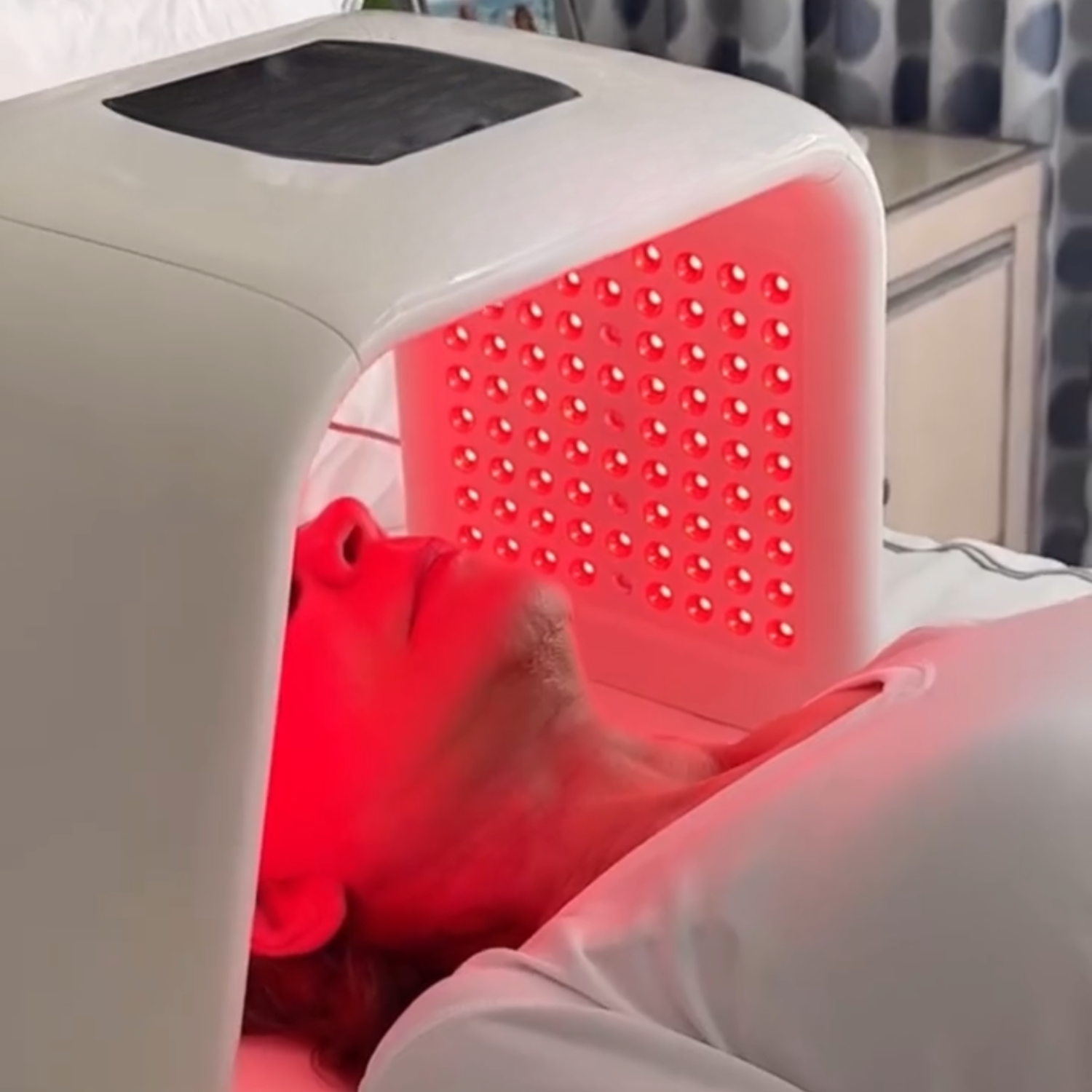 Lila LED-ljus (690nm): Behandlar akne-ärr. Lila LED-ljus kombinerar blått och rött ljus, vilket gör det bra för att bekämpa akne (blått ljus) och samtidigt främja hudregenerering och kollagenproduktion (rött ljus). Det hjälper också till att mildra rodnad och förbättra hudtonen.