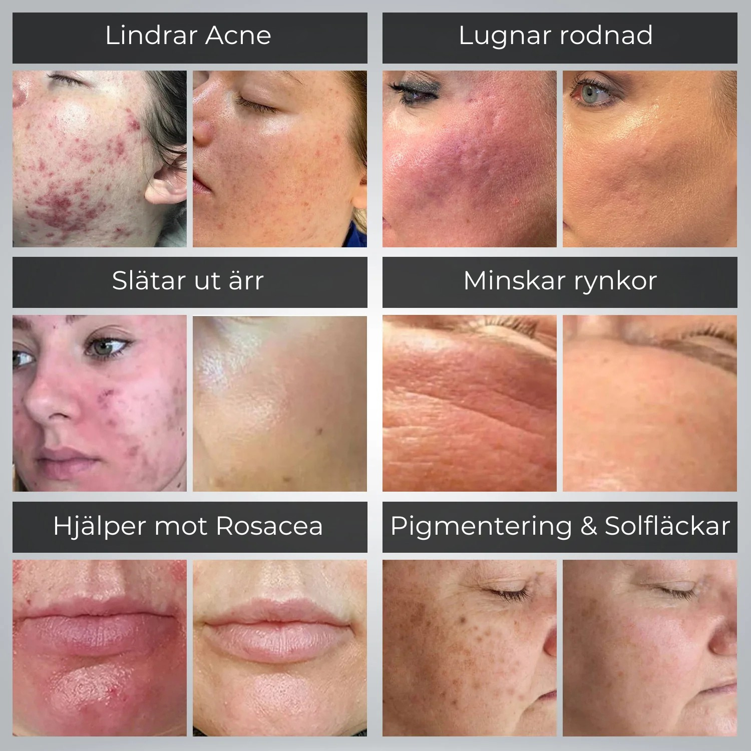 Kanske har du börjat märka att huden känns trött och livlös, eller att de där fina linjerna och rynkorna börjar visa sig? Ju äldre vi blir, desto svårare blir det att bevara en ungdomlig hud. Dyra krämer ger kortvariga resultat och huden åldras snabbare än du kanske vill erkänna. Små linjer runt ögonen som inte var där för några år sedan, pigmentfläckar som blir fler & mörkare, oönskade finnar, acne-ärr och rodnad som inte försvinner. Vi förstår att det kan vara frustrerande.